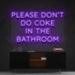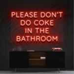 Safe and environmentally friendly, the Please Don’t Do Coke in the Bathroom neon sign is the perfect addition to any setting. Its bright and lively colors promise to add energy to any room, making it an eye-catching piece that’s sure to spark conversations.